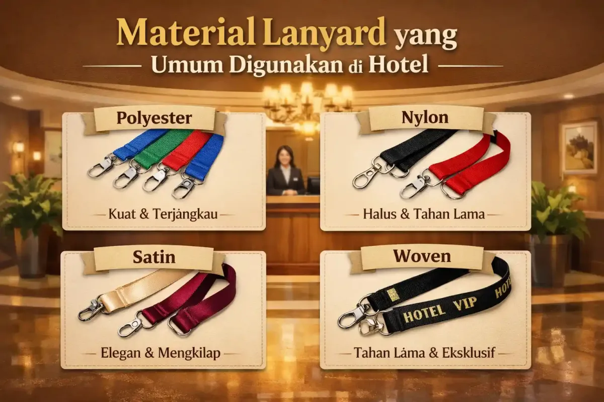 Cari tahu jenis dan material lanyard untuk hotel serta tips memilih yang nyaman dan sesuai kebutuhan staf.