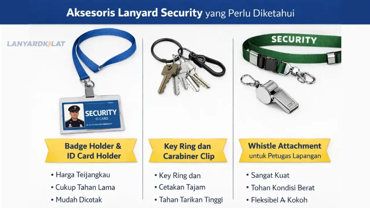 Berikut aksesoris lanyard yang umum digunakan dalam kebutuhan security dan satpam: