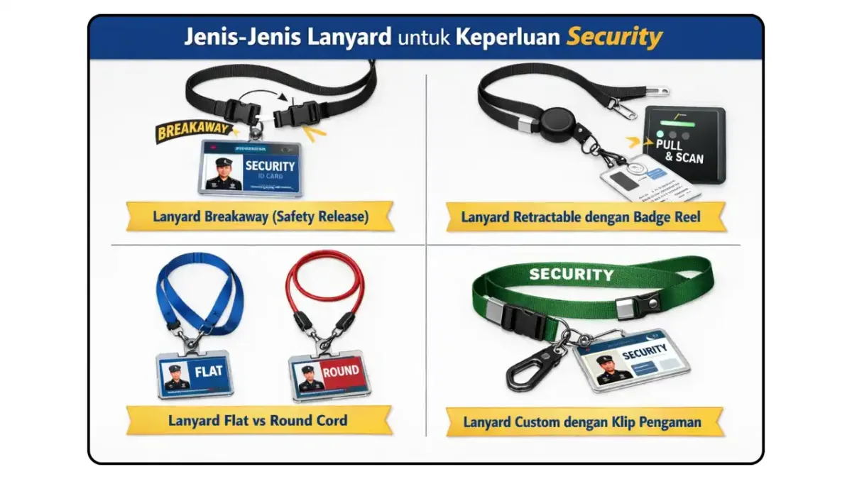 Jika Anda membutuhkan lanyard custom untuk tim security, pastikan memilih spesifikasi yang sesuai dengan kondisi kerja dan standar operasional yang berlaku. Mulai dari bahan, jenis pengait, hingga fitur safety, semuanya perlu diperhatikan agar hasilnya maksimal.