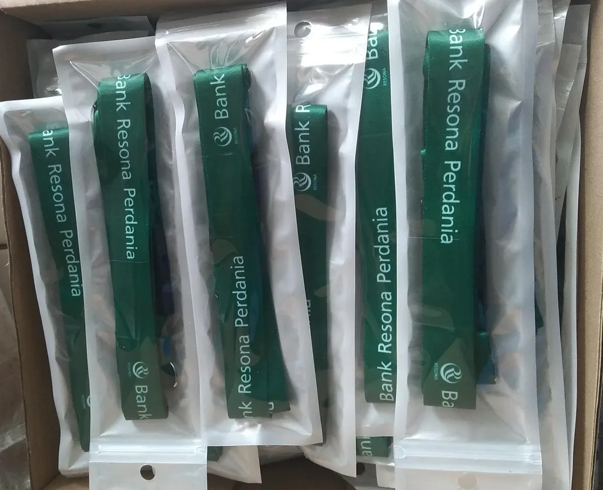 Tali lanyard Bank Resona Perdania ini sangat cocok digunakan untuk menggantung ID card karyawan, kartu akses, maupun identitas kerja lainnya dalam berbagai aktivitas perbankan. Selain berfungsi secara praktis, desainnya yang tertata juga membantu menjaga keseragaman identitas serta memperkuat kesan profesional Bank Resona Perdania sebagai institusi perbankan yang berpengalaman, terpercaya, dan selalu berorientasi pada pelayanan berkualitas.