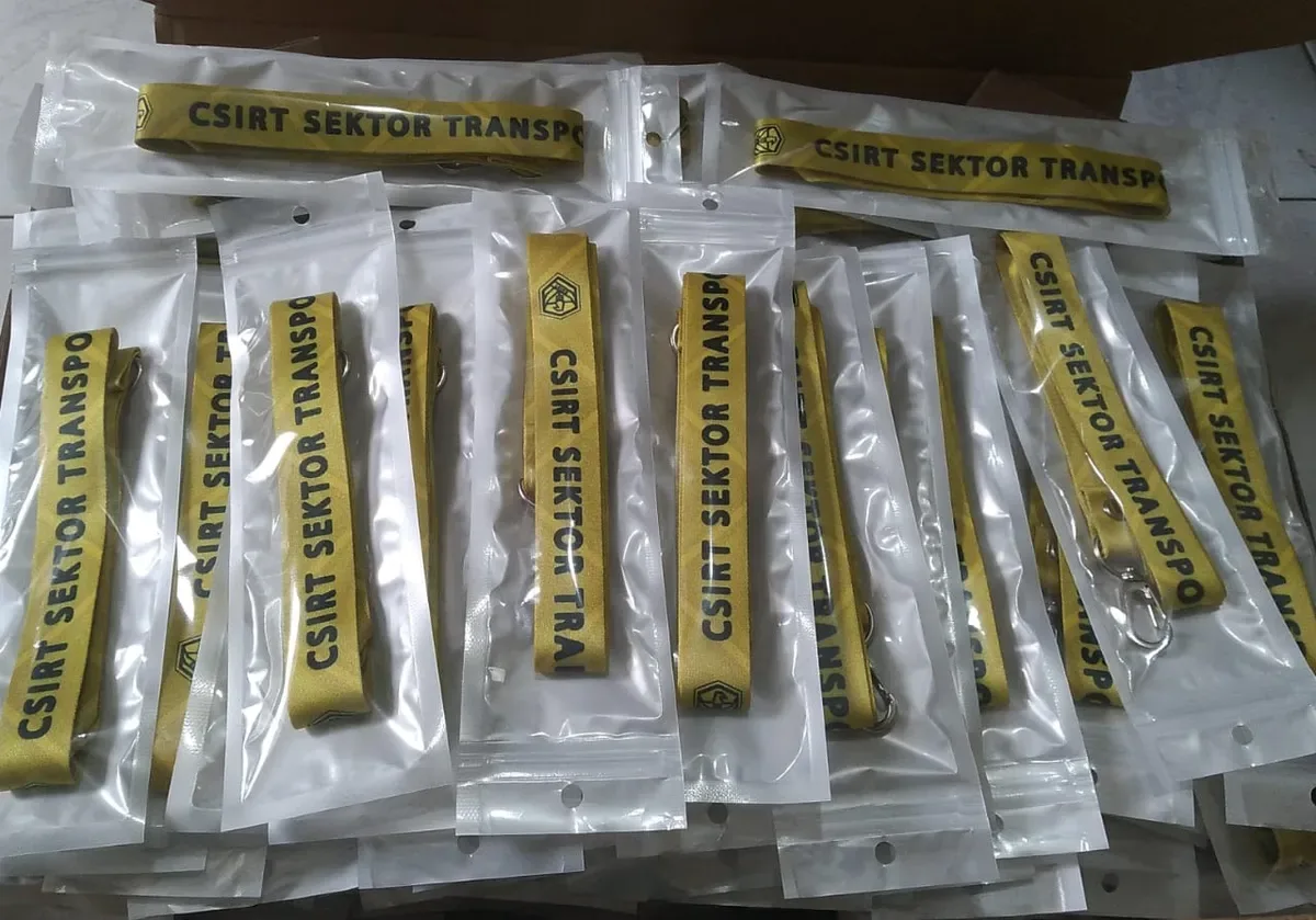 Sebagai bagian dari identitas resmi dalam pelaksanaan tugas tersebut, Tali Lanyard CSIRT Sektor Transportasi digunakan oleh anggota tim dan pihak terkait. Lanyard ini dirancang dengan tampilan yang rapi dan profesional, mencerminkan keseriusan dan kredibilitas dalam menjalankan fungsi pengamanan siber di sektor transportasi.