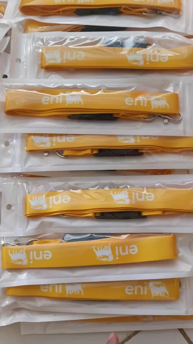 Dalam mendukung aktivitas operasional dan berbagai kegiatan perusahaan berskala internasional, Tali Lanyard Eni digunakan sebagai identitas resmi karyawan dan tim perusahaan. Lanyard ini dirancang dengan desain yang rapi dan profesional, selaras dengan citra Eni sebagai perusahaan energi global yang menjunjung tinggi standar keselamatan, ketertiban, dan profesionalisme.