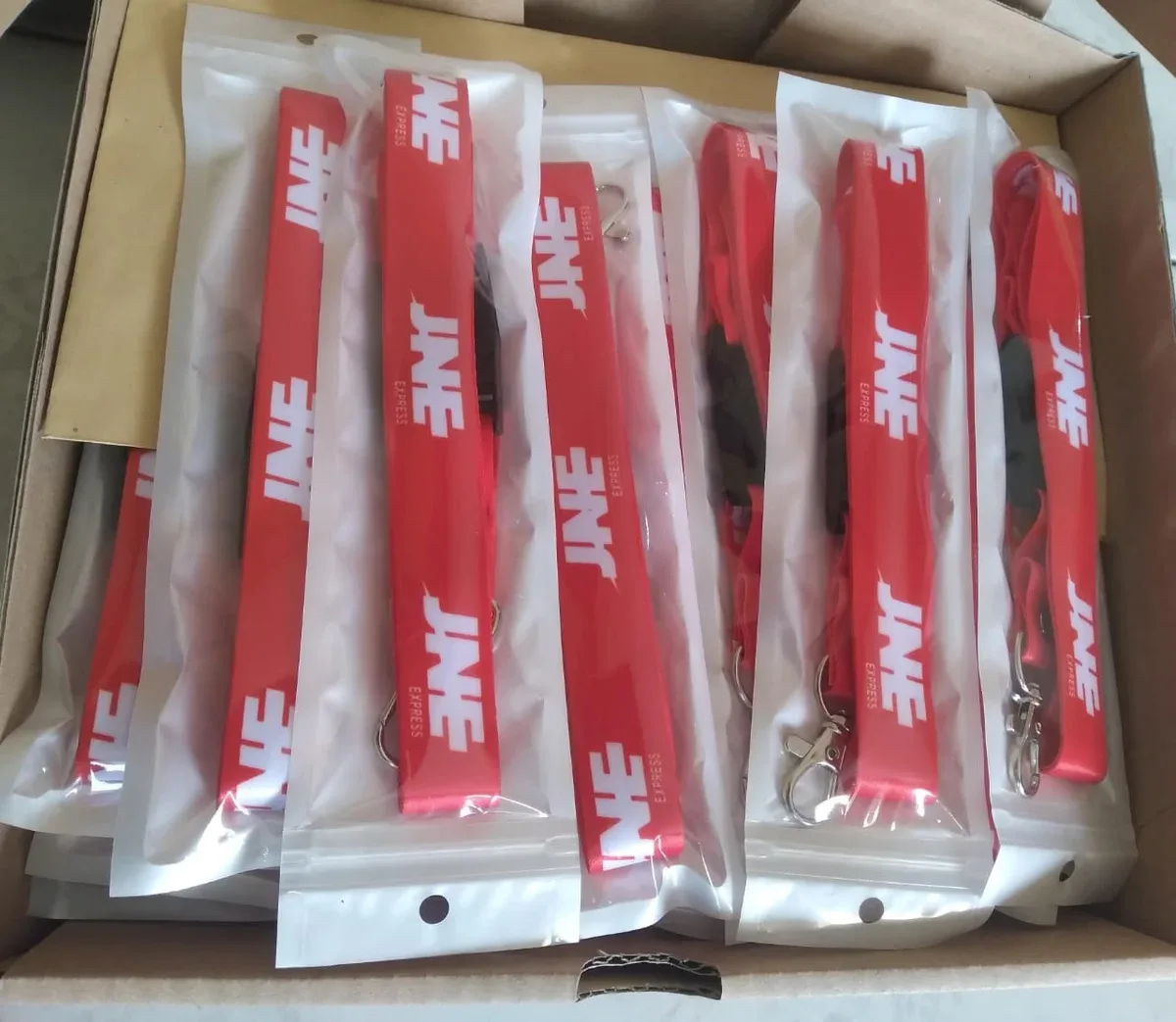 Dalam mendukung aktivitas operasional dan berbagai event perusahaan, Tali Lanyard JNE digunakan sebagai bagian dari identitas resmi. Lanyard ini dirancang dengan desain yang rapi dan profesional, selaras dengan citra JNE sebagai perusahaan logistik yang terpercaya. Menggunakan bahan berkualitas, tali lanyard ini kuat, awet, dan tetap nyaman digunakan meskipun dalam aktivitas kerja yang padat, baik di kantor maupun di lapangan.