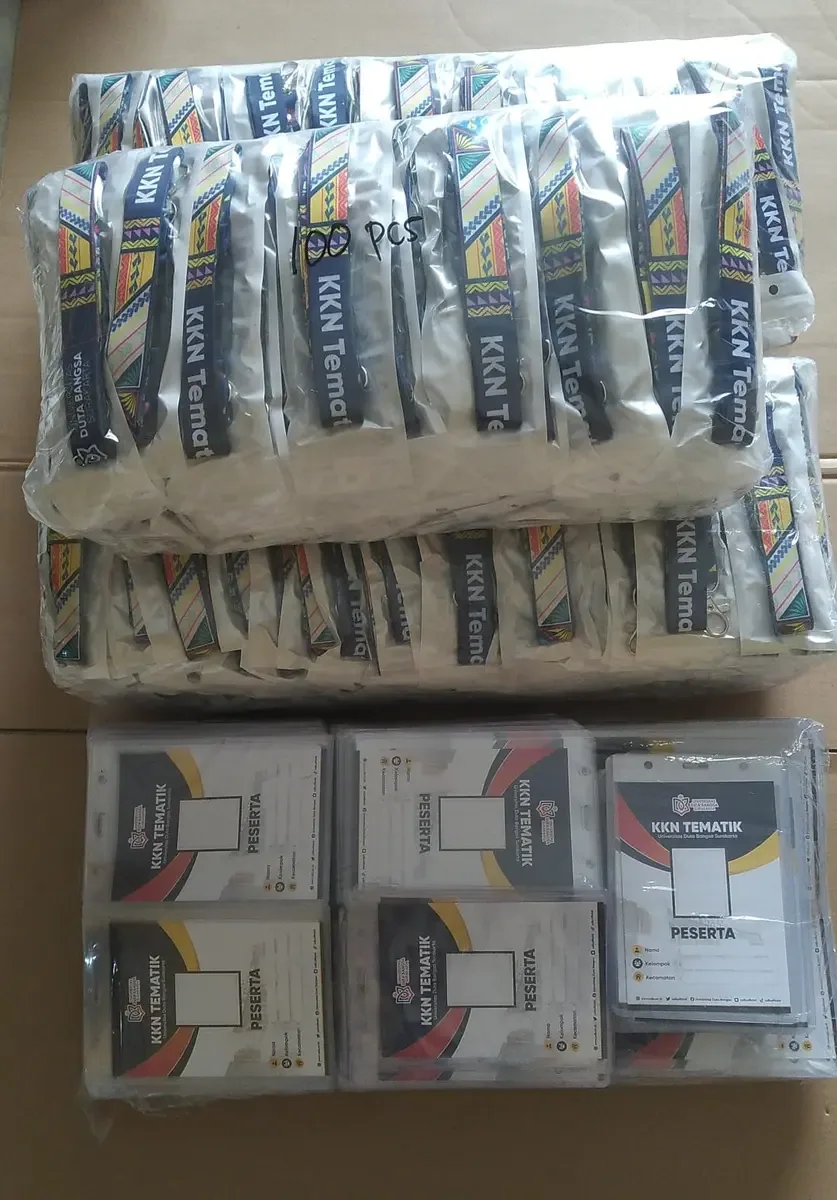 Dalam mendukung kelancaran kegiatan KKN Tematik, Tali Lanyard KKN Tematik Universitas Duta Bangsa Surakarta digunakan sebagai identitas resmi mahasiswa selama berada di lapangan. Lanyard ini dibuat dari bahan berkualitas yang kuat dan tidak mudah rusak, sehingga sesuai digunakan dalam berbagai aktivitas lapangan. Teksturnya nyaman di leher dan ringan, memungkinkan mahasiswa beraktivitas sepanjang hari tanpa terganggu.
