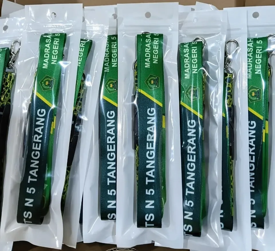 Untuk mendukung kelancaran aktivitas pendidikan dan kegiatan madrasah, Tali Lanyard Custom MTsN 5 Tangerang digunakan sebagai identitas resmi bagi siswa dan guru. Lanyard ini dirancang dengan desain yang rapi dan sederhana, mencerminkan nilai kedisiplinan, ketertiban, dan kerapian yang dijunjung tinggi di lingkungan madrasah.