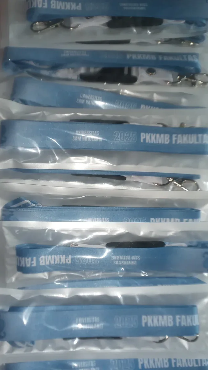 Penggunaan tali lanyard yang seragam membantu memudahkan pengenalan, pengaturan, dan koordinasi selama kegiatan berlangsung. Selain berfungsi sebagai gantungan ID card, lanyard ini juga mendukung terciptanya suasana kegiatan kampus yang tertib, aman, dan terorganisir. Dengan desain yang dapat disesuaikan dengan identitas Universitas Sam Ratulangi, tali lanyard ini turut memperkuat citra institusi serta memberikan kenyamanan bagi seluruh peserta dan panitia selama rangkaian kegiatan PKKMB.
