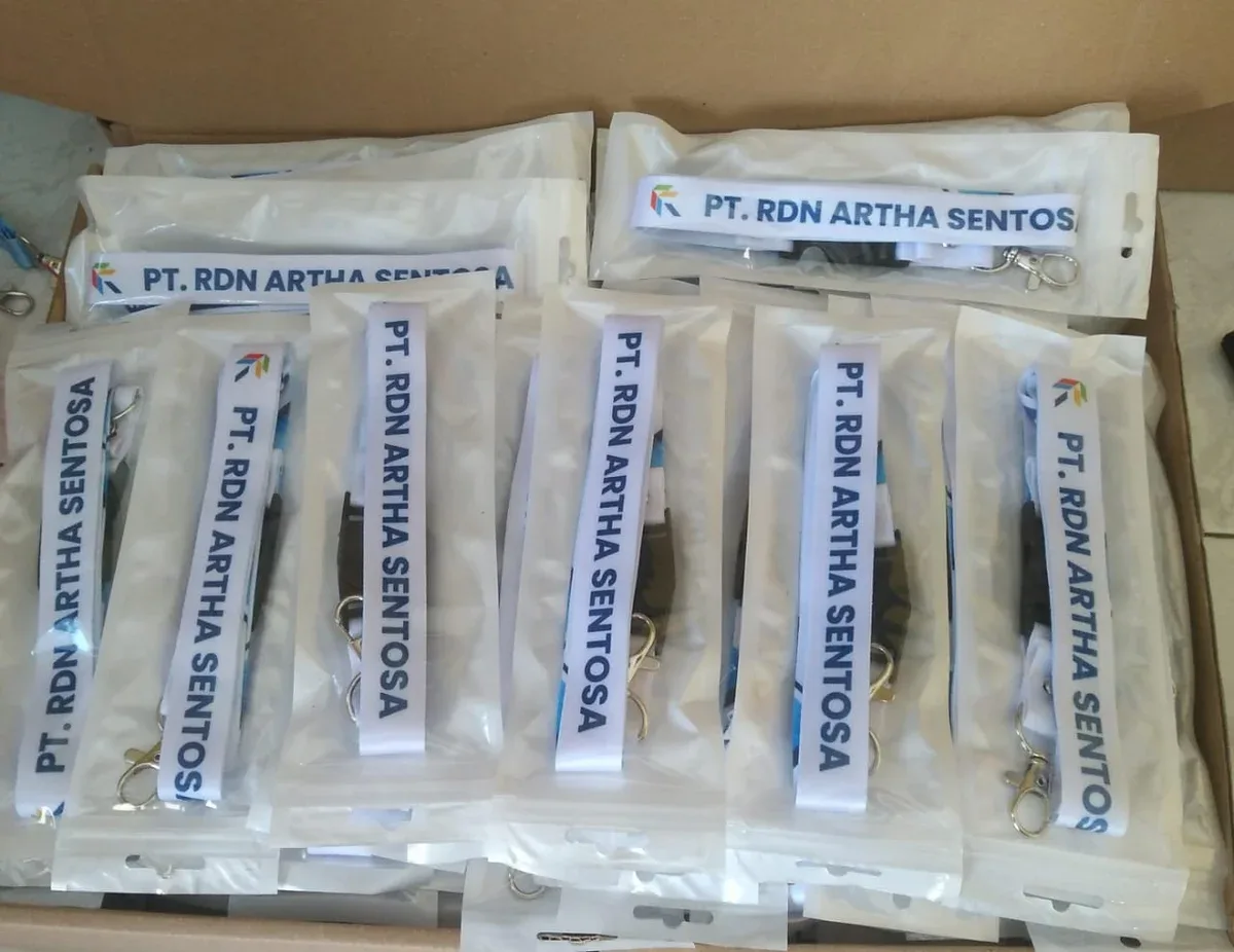 Dalam mendukung operasional perusahaan dan menjaga profesionalisme di lingkungan kerja, Tali Lanyard PT. RDN Artha Sentosa digunakan sebagai identitas resmi karyawan. Lanyard ini dirancang dengan desain yang rapi dan profesional, mencerminkan karakter perusahaan yang berpengalaman dan terpercaya. Menggunakan bahan berkualitas, tali lanyard ini kuat, awet, dan tidak mudah rusak meskipun digunakan setiap hari dalam aktivitas kerja.